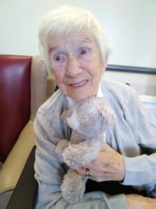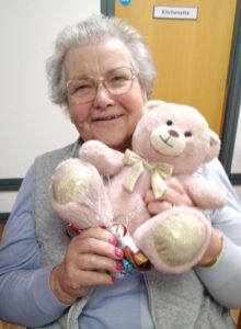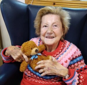 A little additional ministry we offer is one of teddy ‘care’ bears! We could not help but be aware of care home residents who are anxious, lonely, forlorn and lacking in motivation. These were once busy people who had lives full of family, work and other responsibilities. They were mobile, free to act and interact as they wished, but now in care are greatly restricted, no longer with responsibilities, family or pets around them, and saddest of all, with little apparent remaining purpose.